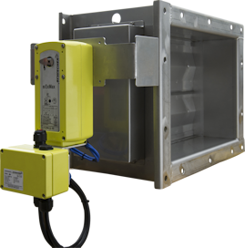 The damper is operated by one or more motorized actuators. These are fitted with and integral spring and are arranged to close the· damper on loss of the electric supply. The damper is suitable for a range of power sources.